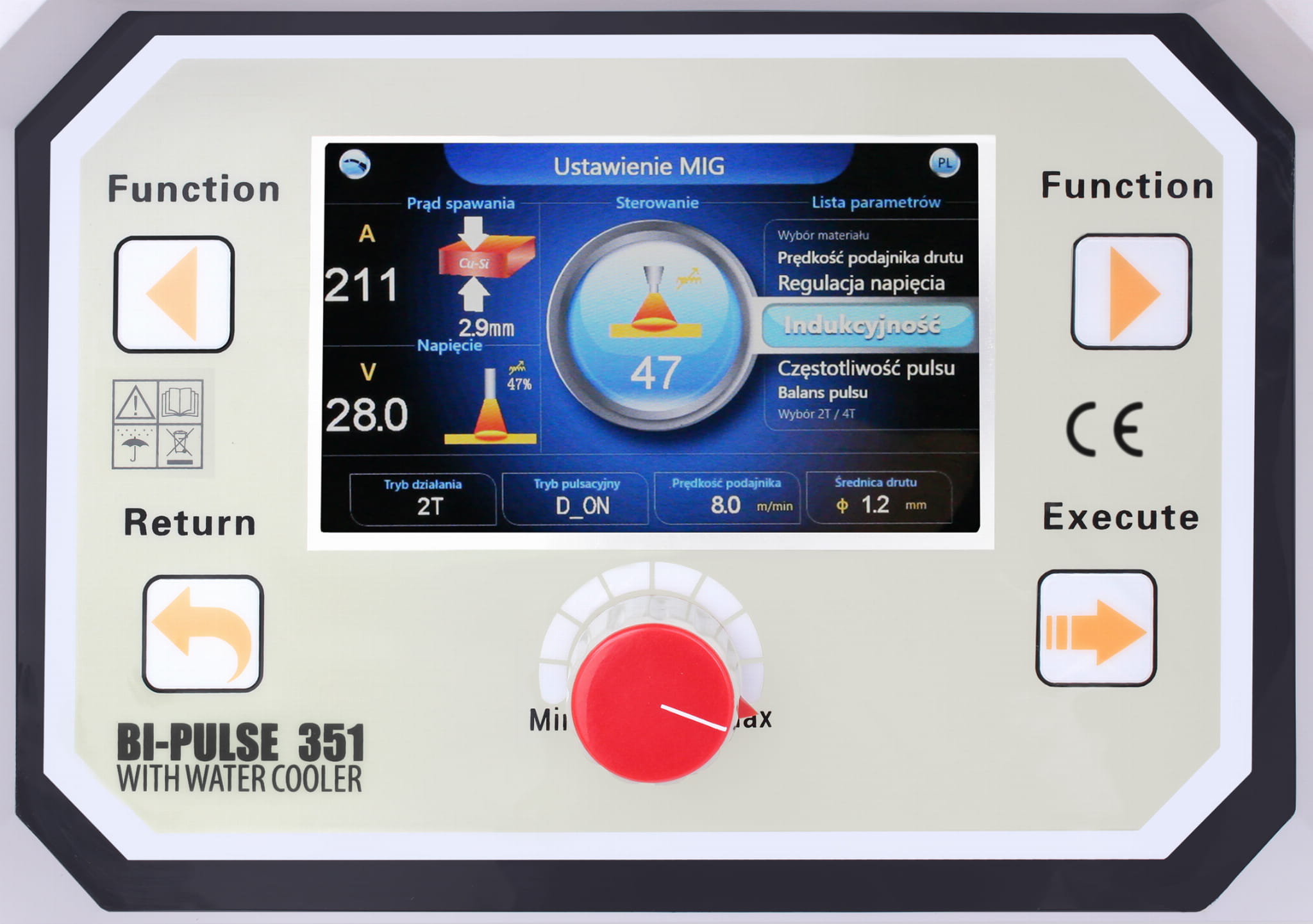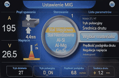 Intuicyjny, łatwy w obsłudze panel sterowania z kolorowym wyświetlaczem pozwala na szybkie ustawienie wszystkich najważniejszych parametrów spawania. Użytkownik może wybrać jeden z pięciu języków menu: polski, angielski, niemiecki, francuski lub czeski. Dzięki ustawieniom synergicznym możliwe jest automatyczne dobieranie parametrów spawania do średnicy drutu spawalniczego oraz grubości i rodzaju materiału.