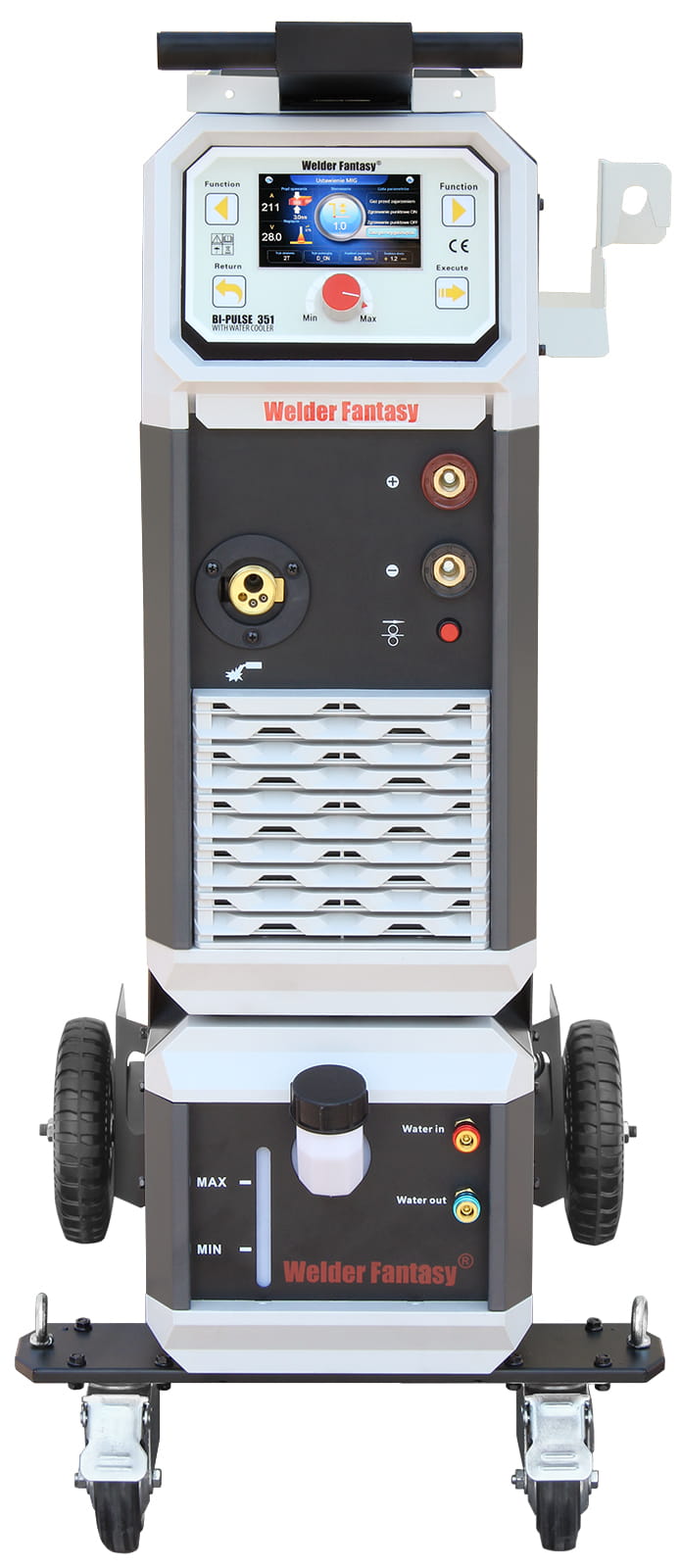Urządzenie Welder Fantasy PERFECT BI-PULSE 351 to nowoczesne, synergiczne źródło inwerterowe zintegrowane z chłodnicą i wózkiem, oferujące wiele możliwości przy wykonywaniu prac spawalniczych. Jego główne zalety to możliwość spawania z wykorzystaniem prądu o pojedynczej lub podwójnej pulsacji w trybie MIG lub MAG oraz możliwość wykorzystania ustawień synergicznych.
