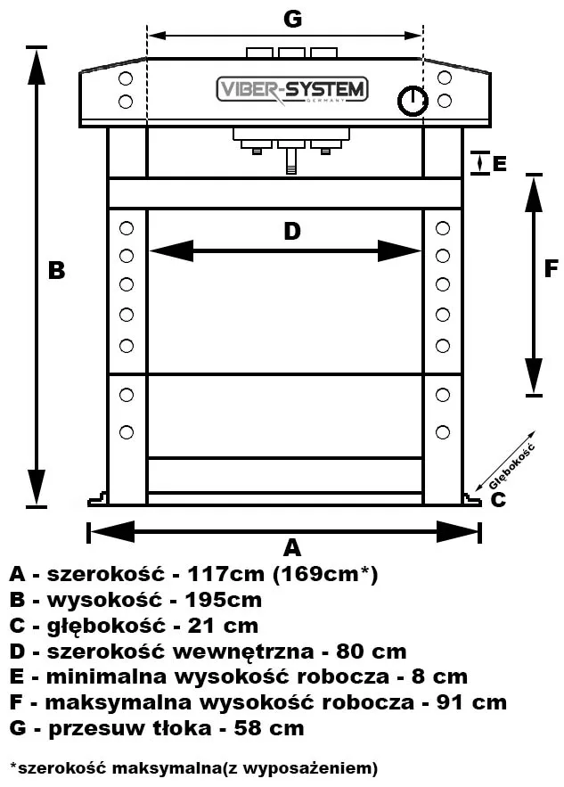 Prasa hydrauliczna warsztatowa VIBER-SYSTEM WP100PRK ruchomy tłok 100t + GRATISY