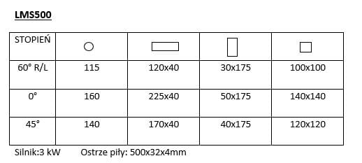 - Maksymalna średnica ostrza: 500 mm