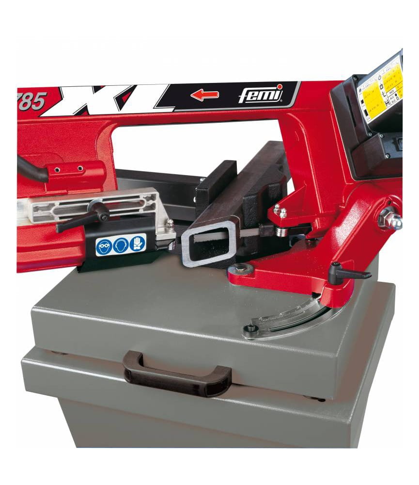 Przecinarka FEMI 785 XL to optymalny wybór dla bardziej wymagających użytkowników, ceniących dużą moc urządzenia, duży zakres cięcia, ale jednocześnie wymagających mobilności samej przecinarki taśmowej.
