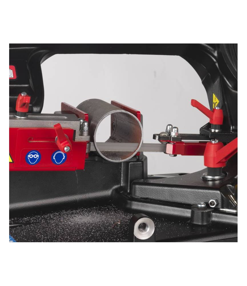 Regulacja naciągu taśmy odbywa się ręcznie za pomocą pokrętła ze sprzęgłem znajdującego się obok uchwytu ramienia przecinarki. Takie rozwiązanie gwarantuje, że za każdym razem naciąg taśmy tnącej będzie optymalny, co pozwoli na wydłużenie żywotności narzędzia oraz zagwarantuje prawidłowe parametry podczas cięcia.