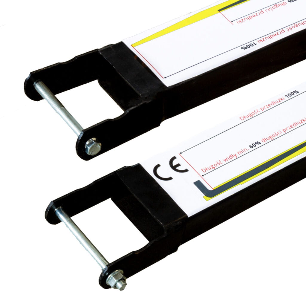 Widła powinna stanowić minimum 60% podparcia przedłużki dla bezpiecznej pracy.