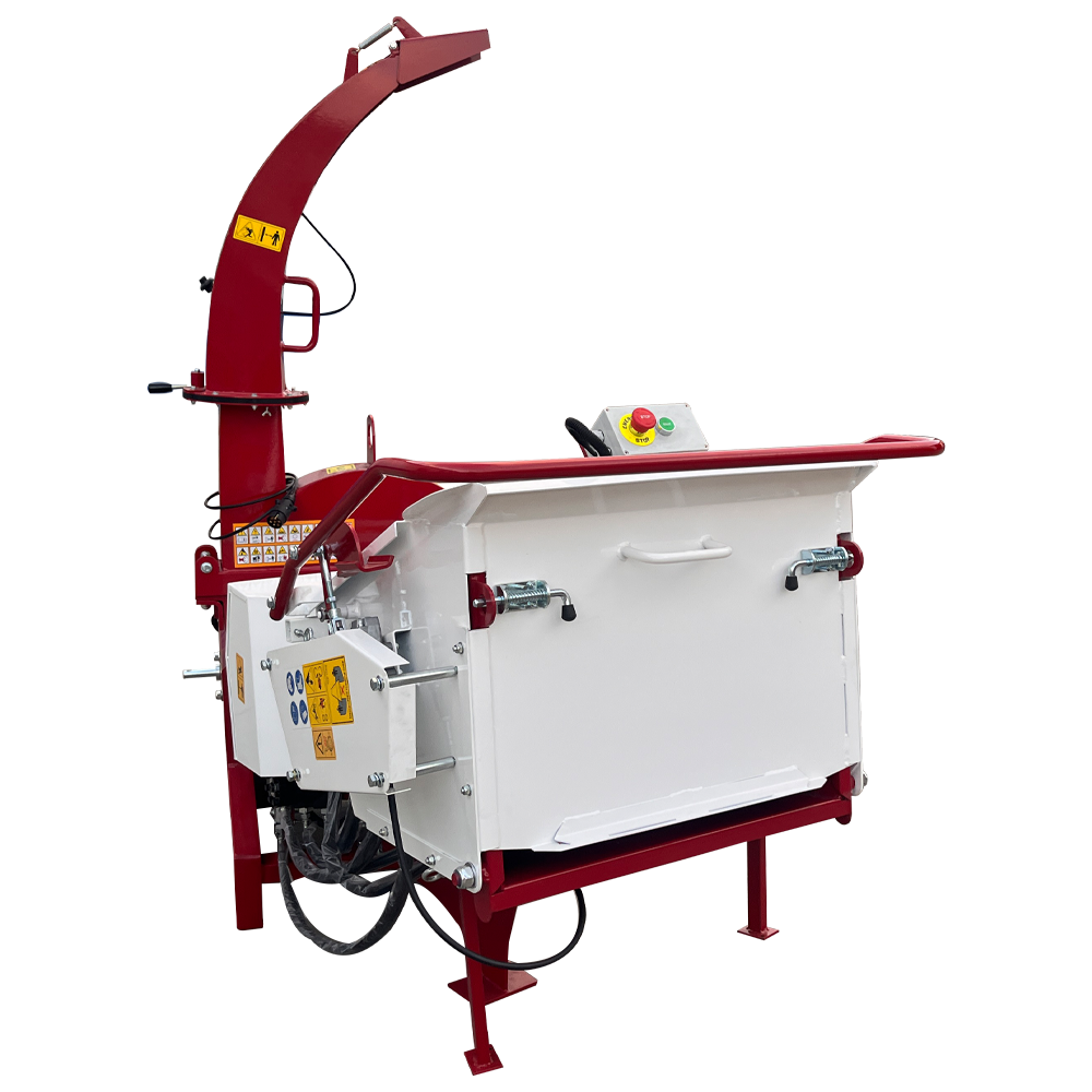 - Dzięki hydraulicznemu podajnikowi i solidnej konstrukcji, maszyna sprawdza się przy intensywnej eksploatacji, zapewniając szybkie i bezpieczne rozdrabnianie drewna na zrębki opałowe lub kompostowe.