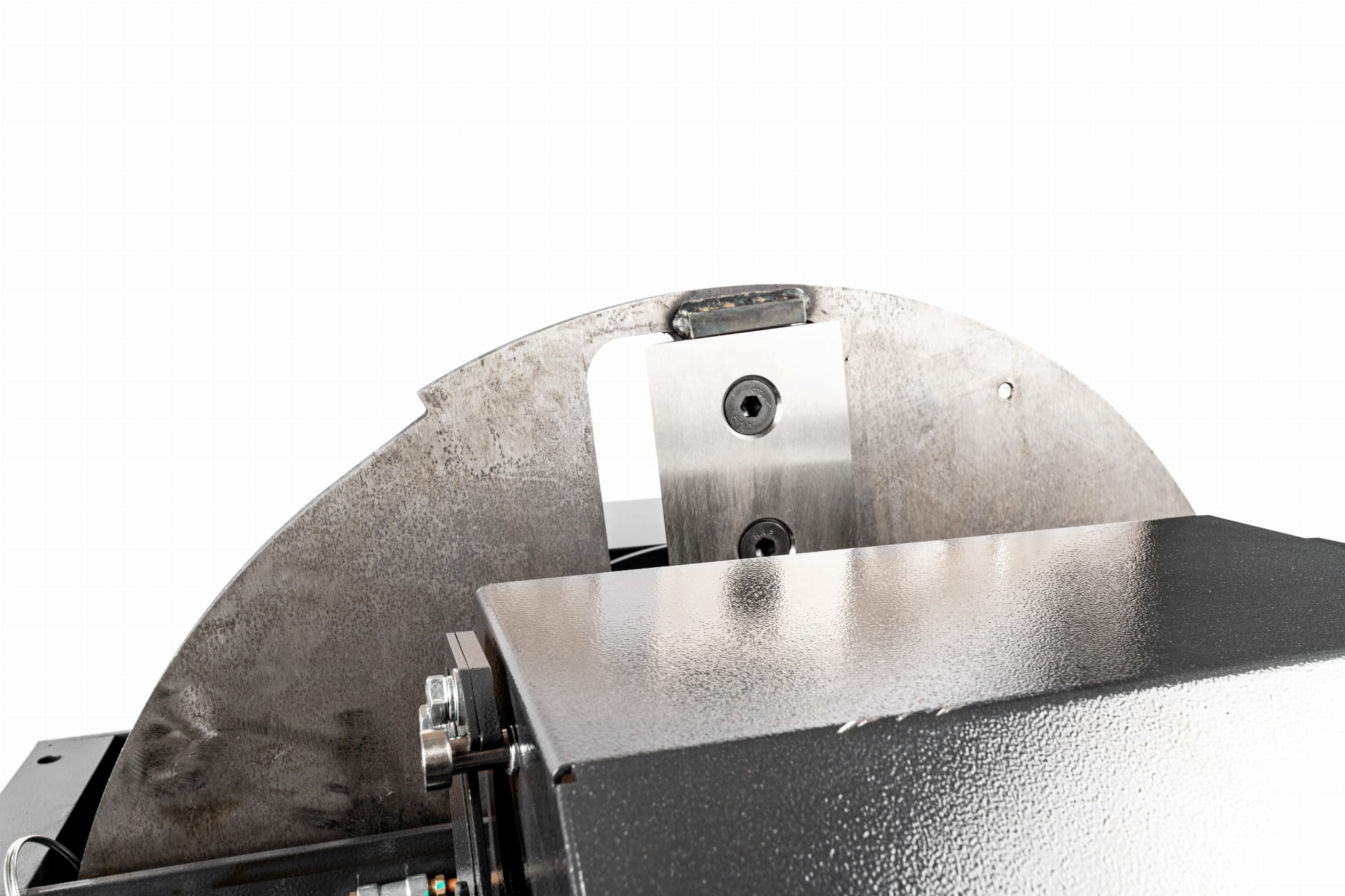 - Układ tnący: System tarczowy z dwoma, dwustronnymi nożami oraz kowadełkiem dolnym i bocznym