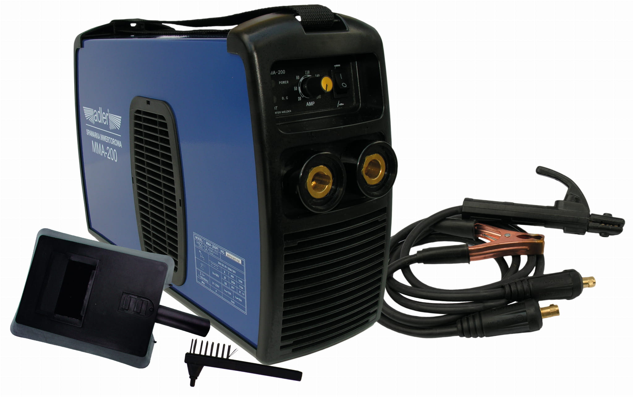 Elektroniczna spawarka Adler MMA-200 zbudowana w oparciu o tranzystory bipolarne IGBT. Urządzenie spawa prądem stałym DC. Posiada płynną, bezstopniową regulację prądu spawania. Spawanie metodą MMA z wykorzystaniem funkcji ARC FORCE, HOT START, ANTI STICK. Długie przewody spawalnicze o przekroju 25mm2, w całości z miedzi. Urządzenie może pracować z szeroką gamą materiałów takich jak: stal, stal nierdzewna, tytan, miedź, nikiel oraz ich stopy. Dwa współpracujące ze sobą wentylatory usprawniają system chłodzenia i tym samym znacząco przedłużają cykl pracy i podnoszą sprawność spawarki. Układ elektroniczny składa się z jednej płytki scalonej co razem z częściowo metalową i plastikową obudową sprawiło, że spawarka Adler MMA-200 to lekkie i przenośne urządzenie.