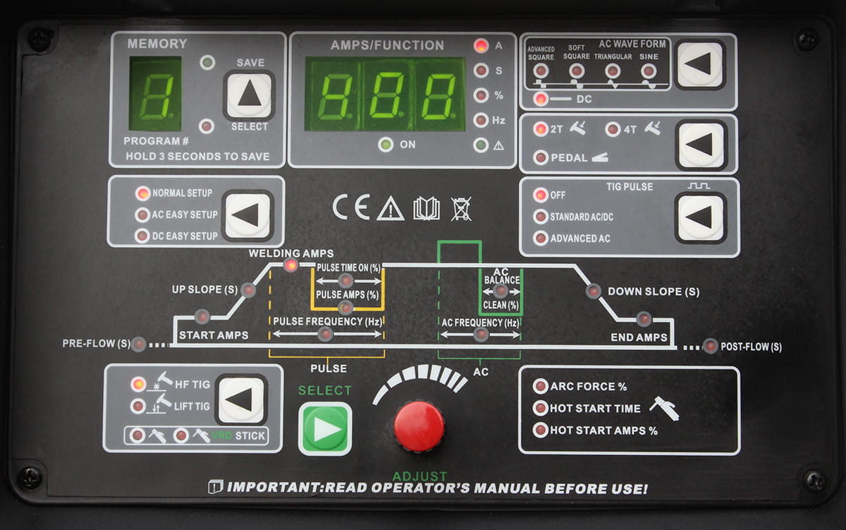 Urządzenie najwyższej klasy wyznacza nowe standardy wśród maszyn spawalniczych AC/DC, a przyjazny panel sterowania zapewnia dobór wszystkich niezbędnych parametrów pracy. W skład standardowego wyposażenia wchodzi TIG ARC T5W 8M.
