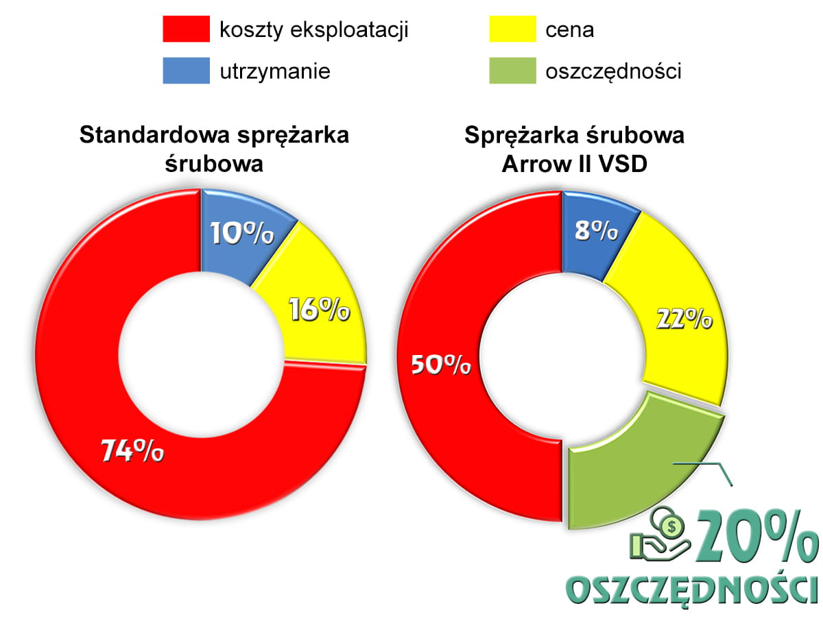 W odpowiedzi na zapotrzebowanie naszych Klientów oraz aktualną sytuację na rynku energii elektrycznej wprowadzamy do naszej oferty sprężarkę śrubową ARROW II 15kW VSD z falownikiem umożliwiającym płynną regulację wydajności i dopasowanie jej do zapotrzebowania na powietrze w danej chwili. Takie rozwiązanie pozwala na znaczącą oszczędność energii elektrycznej oraz wydłużenie żywotności mechanizmów sprężarki.