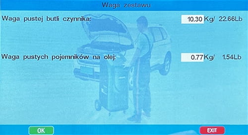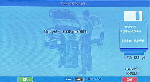- Obsługa czynnika chłodzącego R134a lub R1234yf (Klient dokonuje wyboru w momencie zakupu - stacja nie obsługuje dwóch czynników zamiennie)