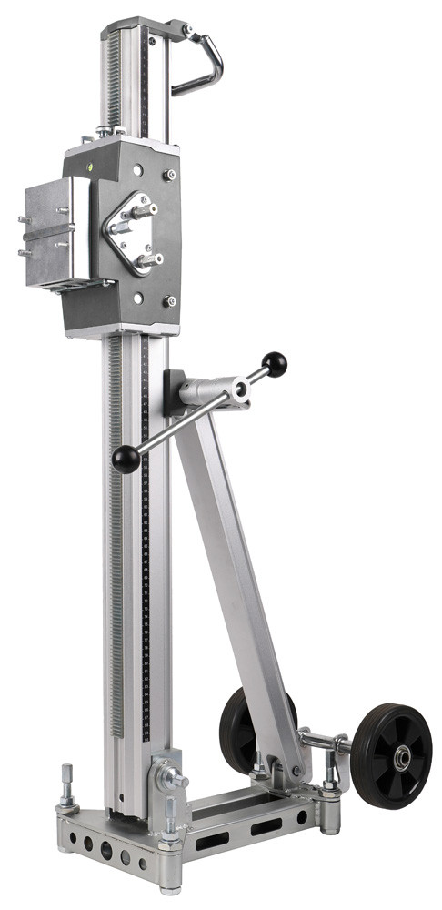 - stabilność wiertnicy - możliwość zablokowania wózka oraz libella dla precyzyjnego ustawienia kąta wiercenia pozwalają na ułożenie i utrzymanie wiertnicy pod odpowiednim kątem przez cały czas pracy.