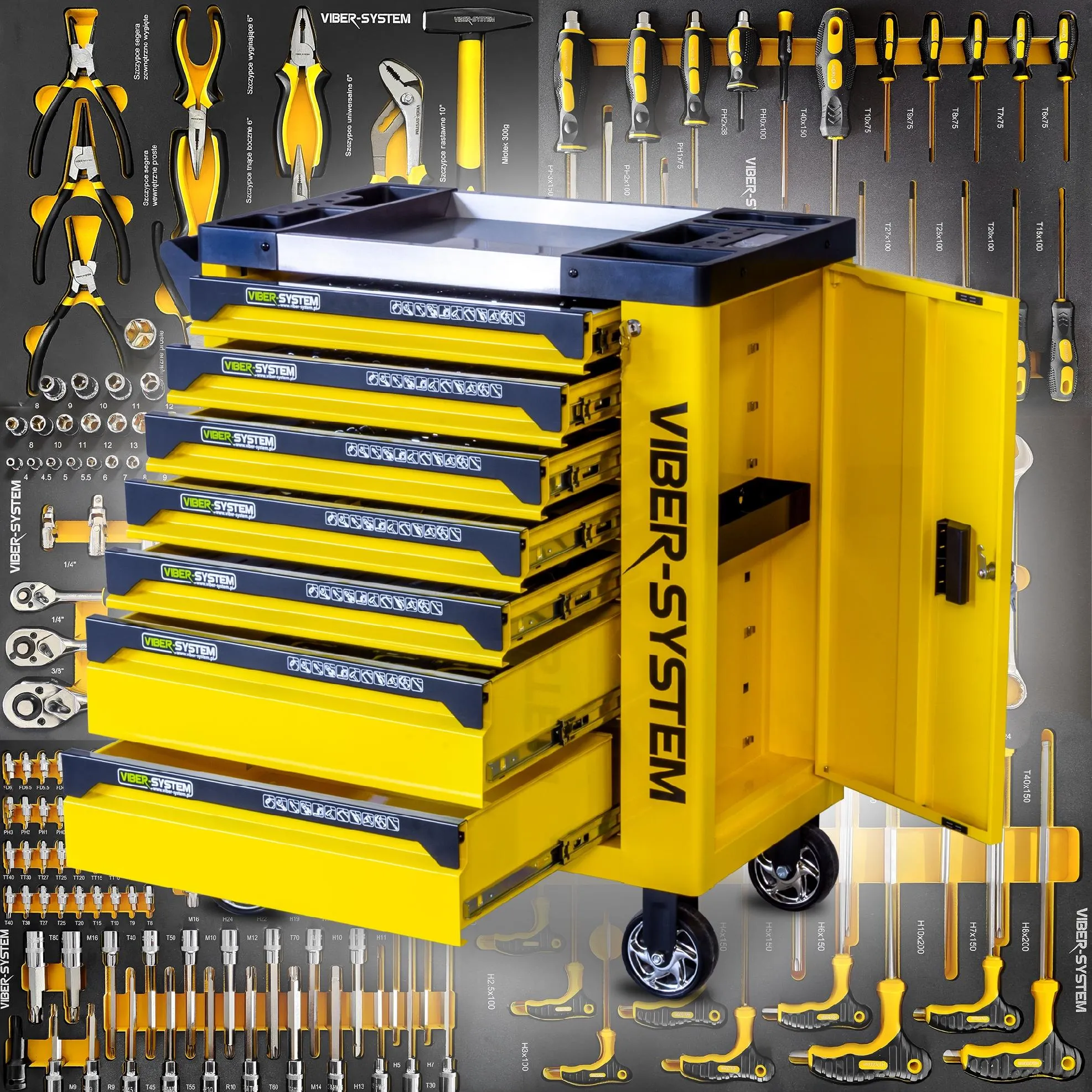 Szafka narzędziowa VIBER-SYSTEM SZN254 wózek warsztatowy z wyposażeniem 253 elementy