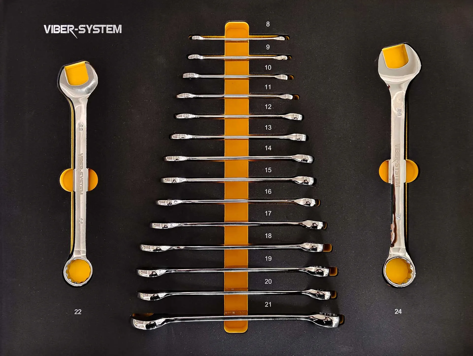 - 16 szt. kluczy płasko-oczkowych: 8–9–10–11–12–13–14–15–16–17–18–19–20–21–22–24 mm