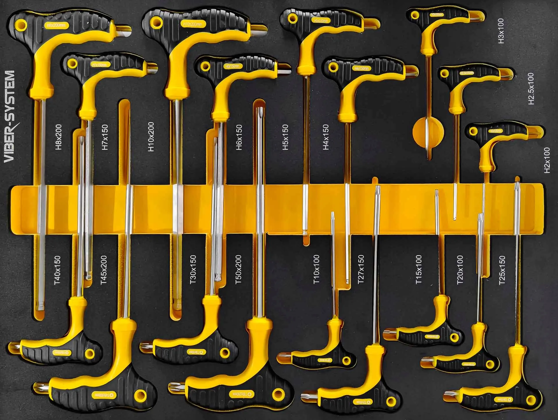 - 11 szt. śrubokrętów Torx:T6×75, T7×75, T8×75, T9×75, T10×75, T15×100, T20×100, T25×100, T27×100, T30×100, T40×150