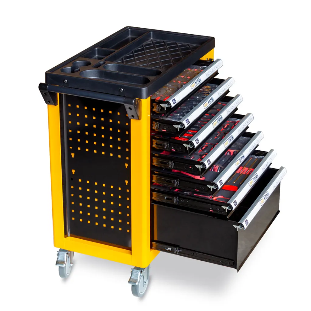 - 7 szuflad - Każda szuflada jest w pełni wysuwana, co ułatwia dostęp do narzędzi.
