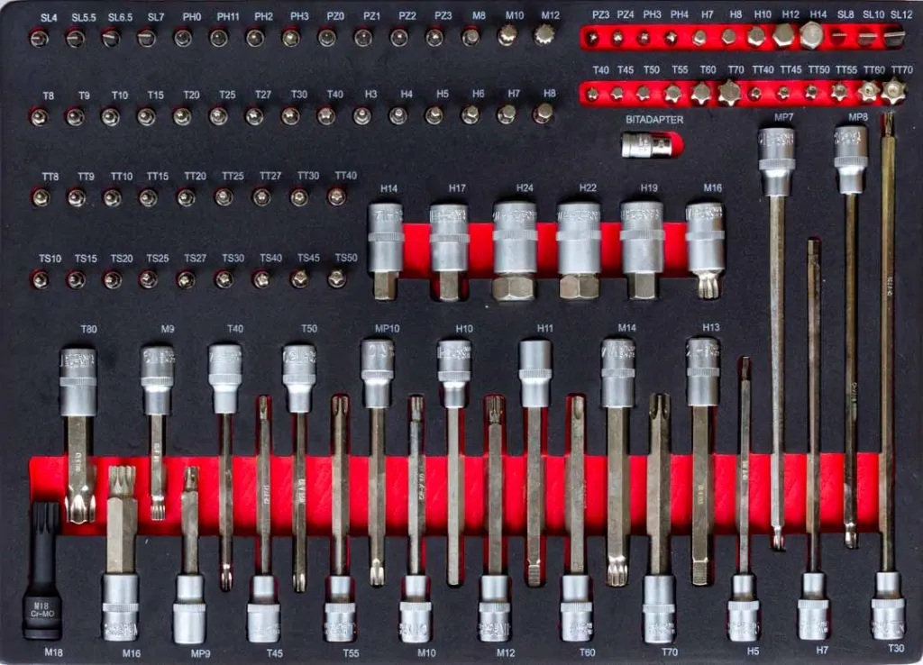 - Torx: T8, 9, 10, 15, 20, 25, 27, 30, 40