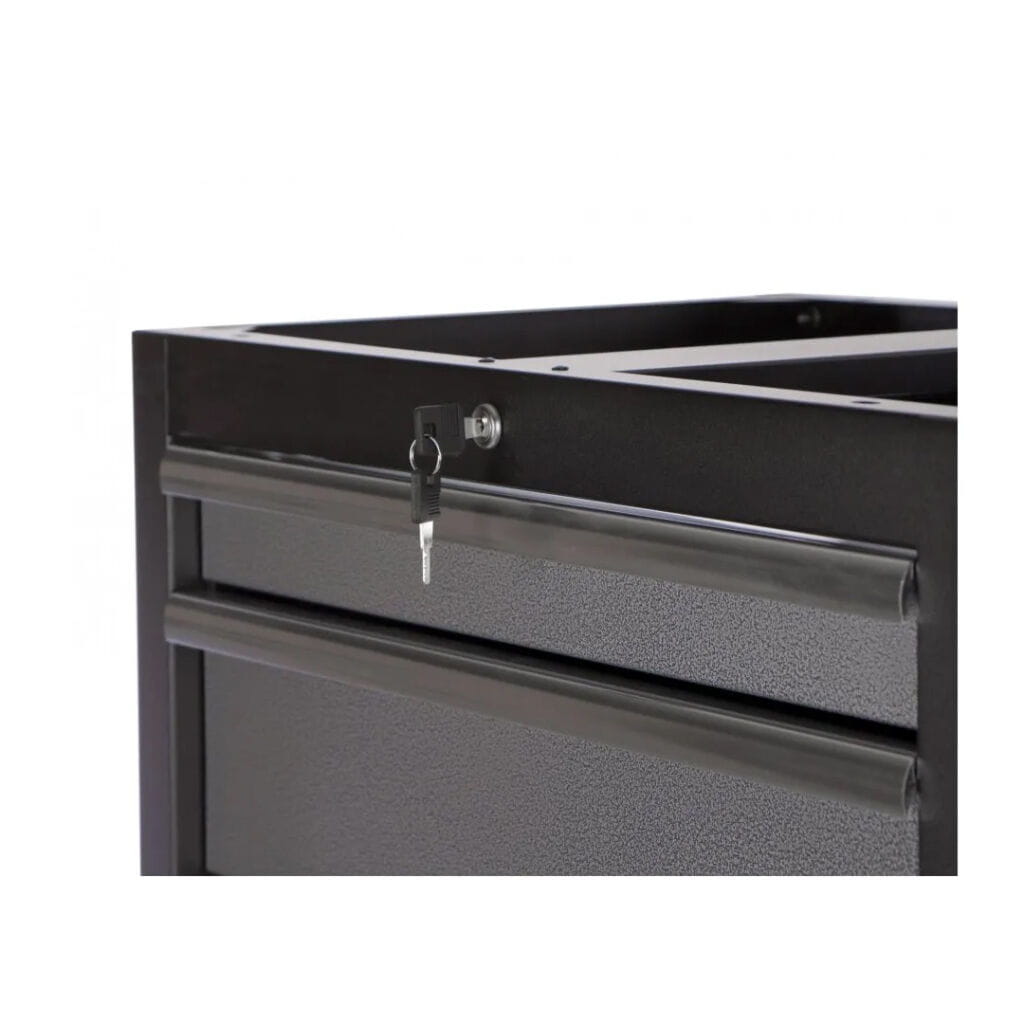 - Uniwersalne zastosowanie: Dostosowana do pracy jako samodzielny moduł lub jako element zestawu – np. z blatem roboczym i perforowaną tablicą narzędziową.