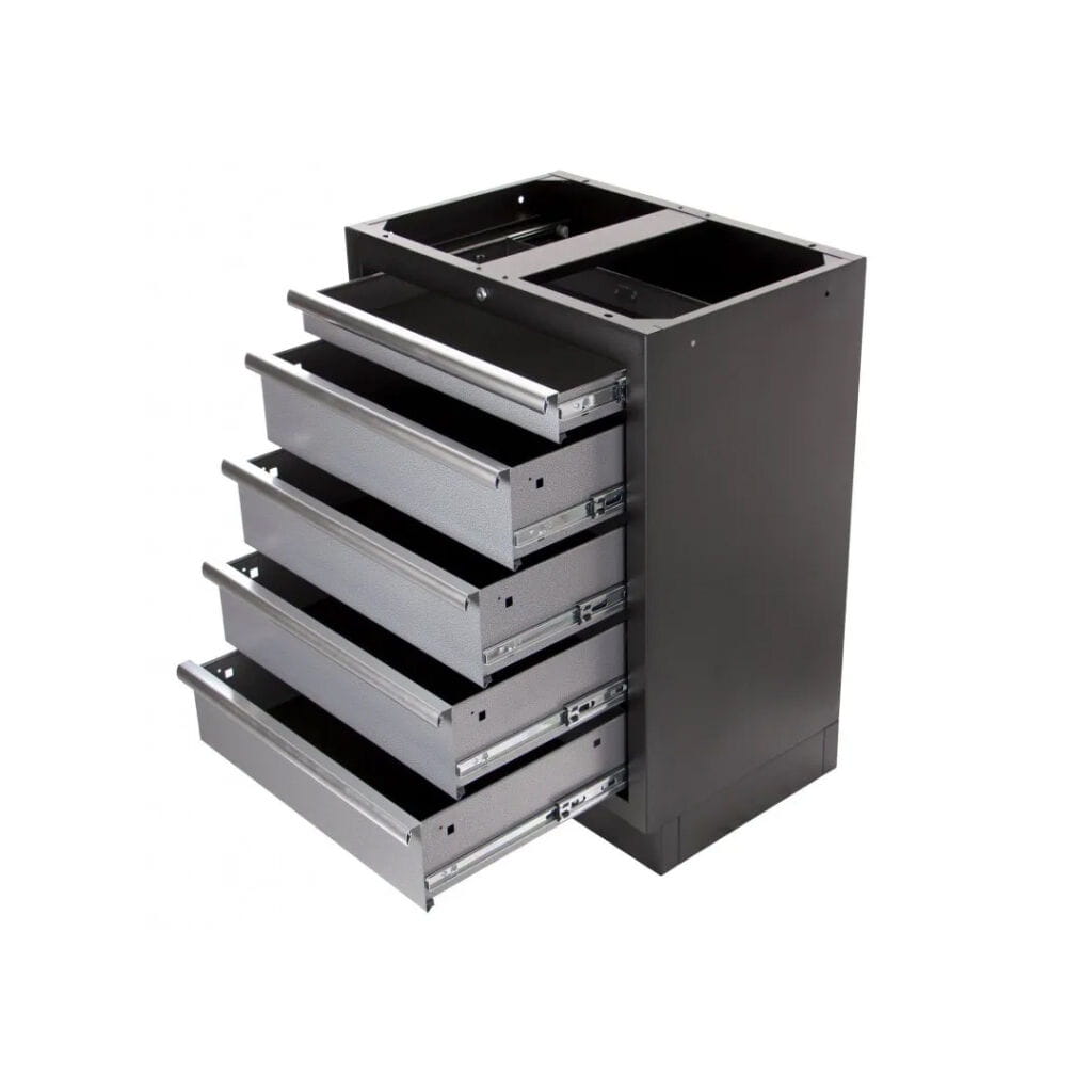 - 5 wąskich szuflad – świetne do przechowywania drobnych narzędzi, części czy materiałów eksploatacyjnych.