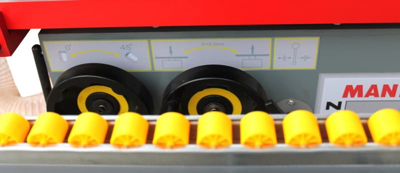 - Seryjnie wyposażona jest w urządzenie do szlifowania krawędzi elementów z forniru z precyzyjną regulacją.
