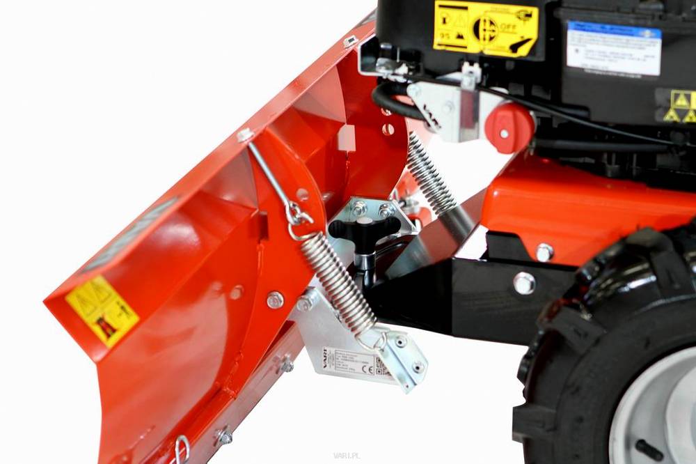 Tarcza ma zoptymalizowany kształt ułatwiający usuwanie śniegu i płynną regulację boczną. Zawieszenie lemiesza chroni maszynę i jej operatora w przypadku zderzenia z ukrytymi przeszkodami. Gumowe ostrze jest delikatne dla powierzchni.