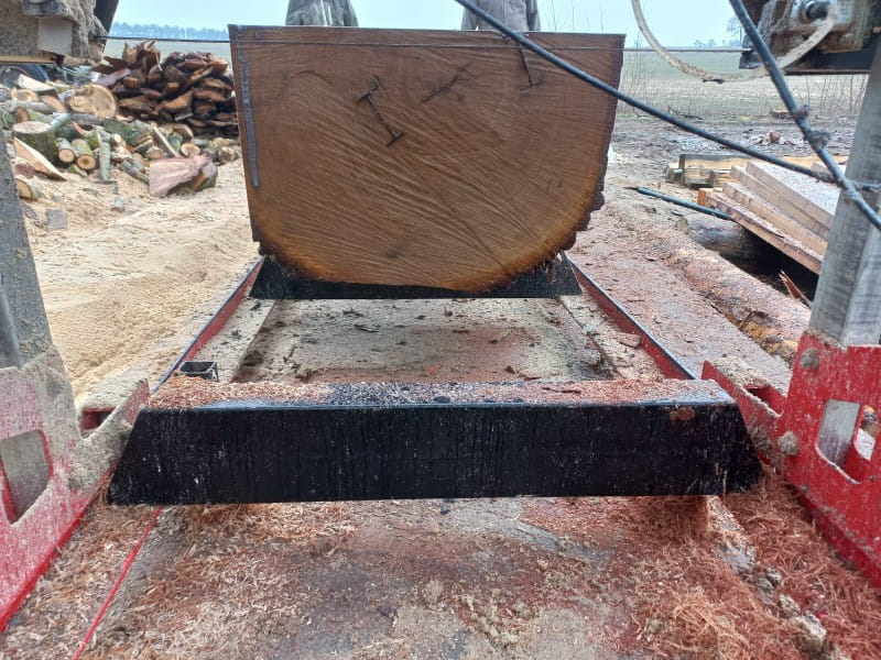 - Maszyna przeznaczona jest do cięcia zarówno miękkiego jak i twardego drewna lub klocków drewnianych o długościach zgodnych z konstrukcją maszyny. Możliwość cięcia również drewna suchego oraz świeżego(surowego).