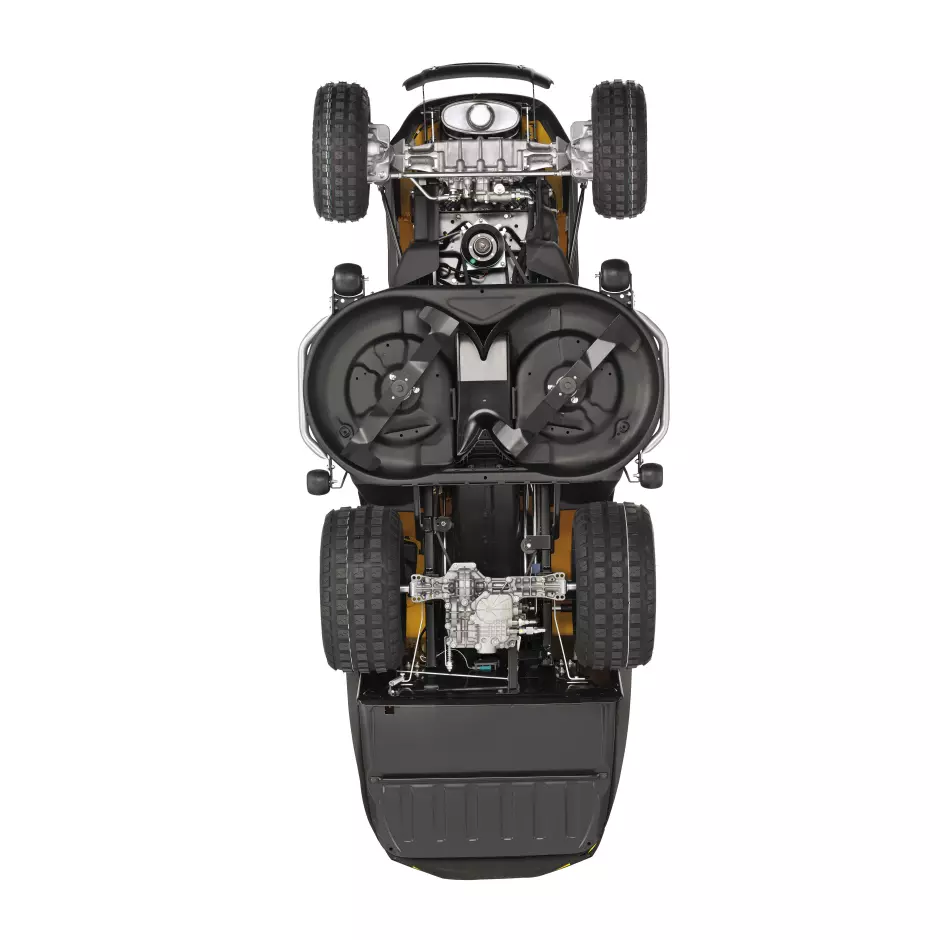 - Wzmocniony agregat koszący o szerokości roboczej 102 cm i 4 kół zapobiegających skalpowaniu trawnika