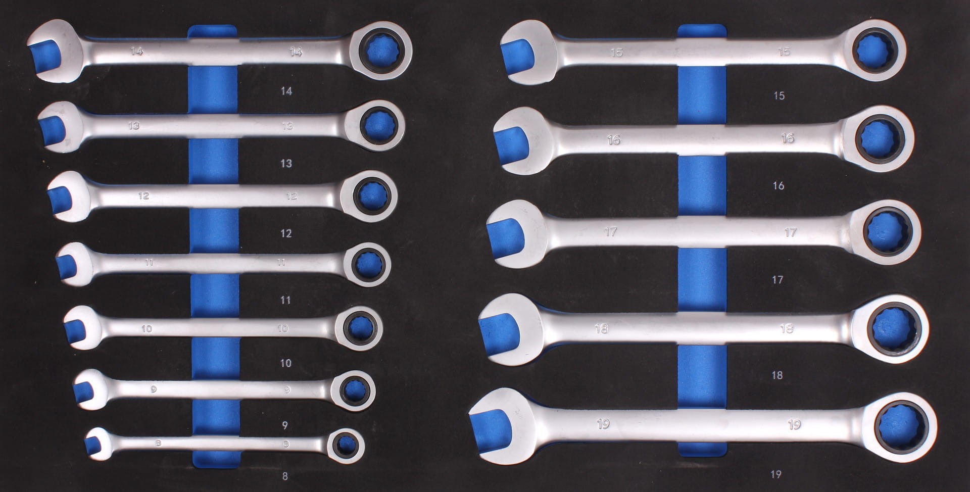 - Komplet kluczy płasko-oczkowych z grzechotką 12 szt.