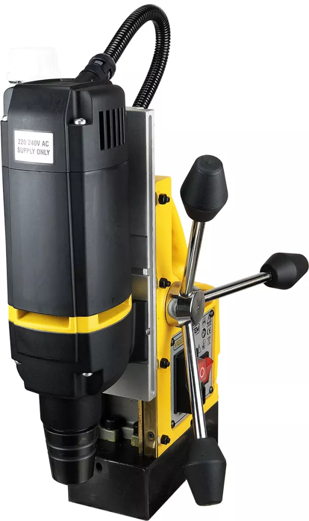 Profesjonalna Wiertarka Magnetyczna MB 35 przeznaczona jest do przemysłu oraz warsztatów usługowych. Doskonale sprawdza się w przypadku wiercenia w materiałach stalowych o różnej grubości oraz twardości. Dzięki podstawie magnetycznej wiertarka stabilnie stoi na podłożu co zapewnia bezpieczeństwo, stabilność oraz precyzję wiercenia.