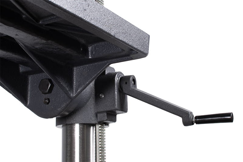 • Stół roboczy może być obracany o 360° za pomocą sworznia obrotowego i pochylany w zakresie +/-45°, co umożliwia wiercenie otworów pod różnymi kątami