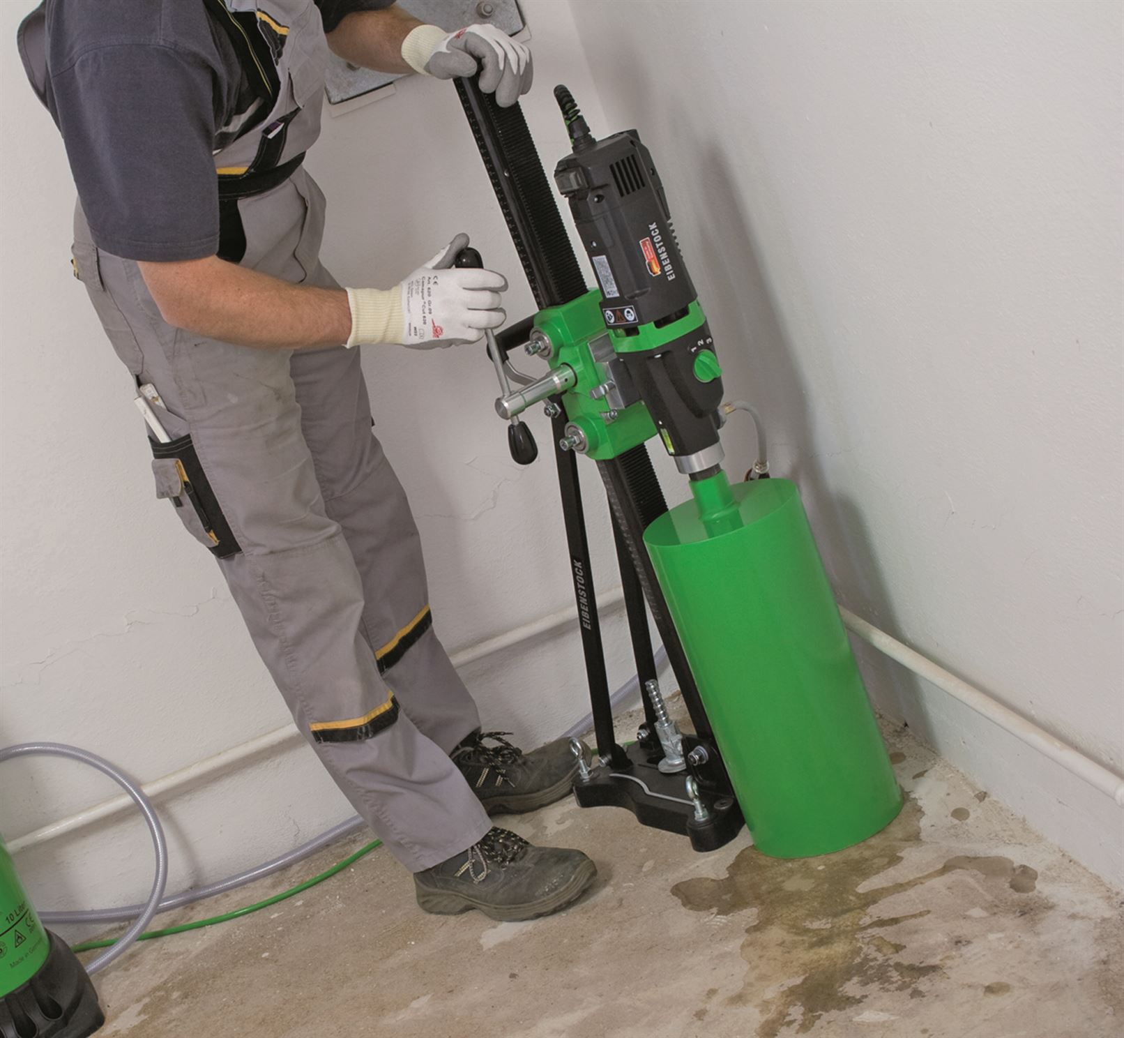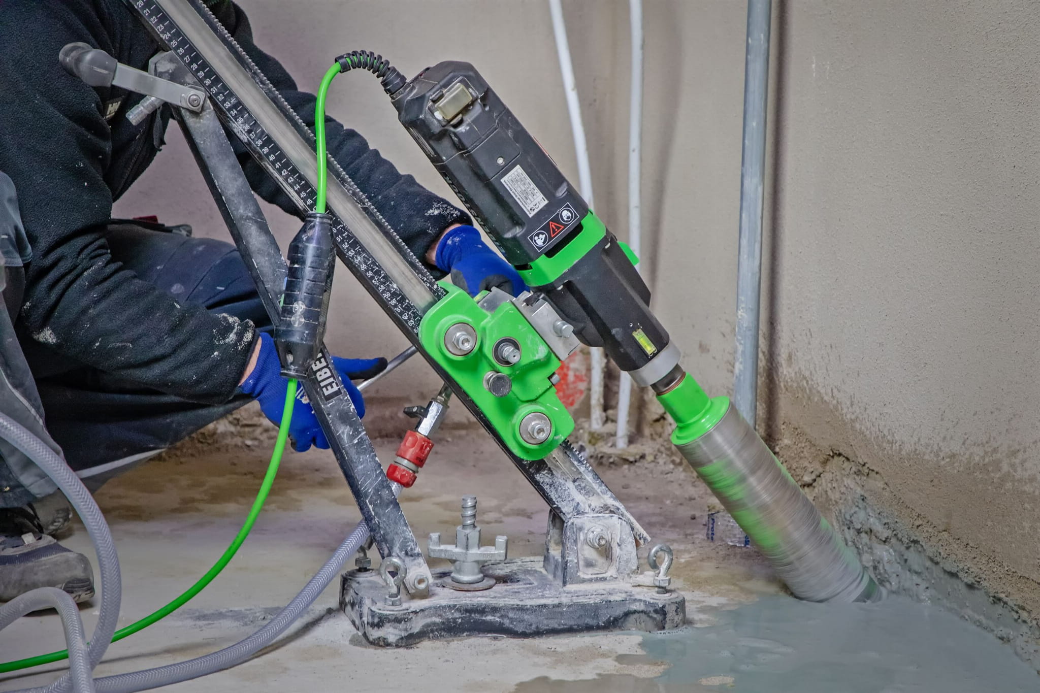 - Wiercenie na mokro w zmacnianym betonie, kamieniu naturalnym i asfalcie