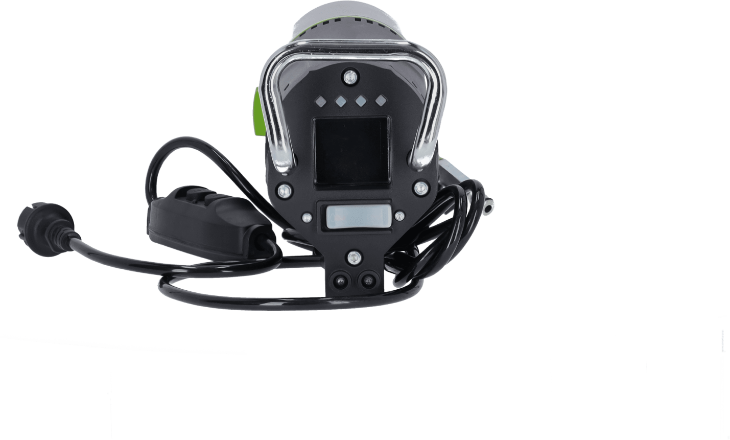 - wyświetlacz LCD - wyświetlacz podaje wiele istotnych parametrów pracy, takich jak napięcie i moc pobieranego prądu, temperaturę czy licznik czasu pracy
