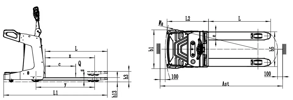 - Wysokość wideł (opuszczone): 85 mm