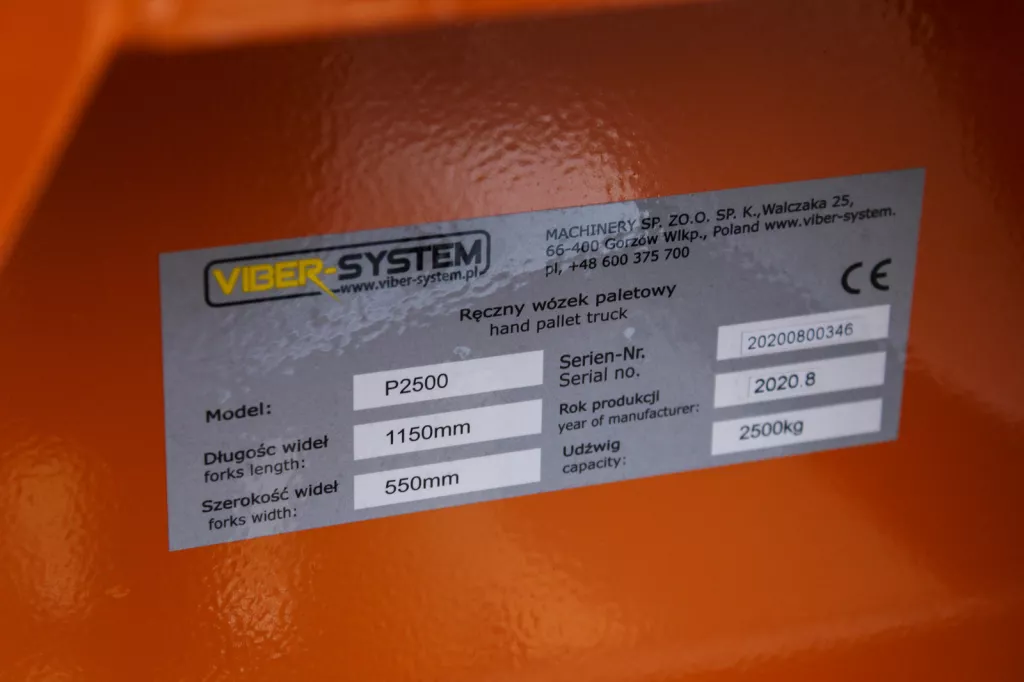 Wózek ręczny paletowy magazynowy 2500kg VIBER-SYSTEM P2500 Paleciak wózek do Palet wózek podnośny