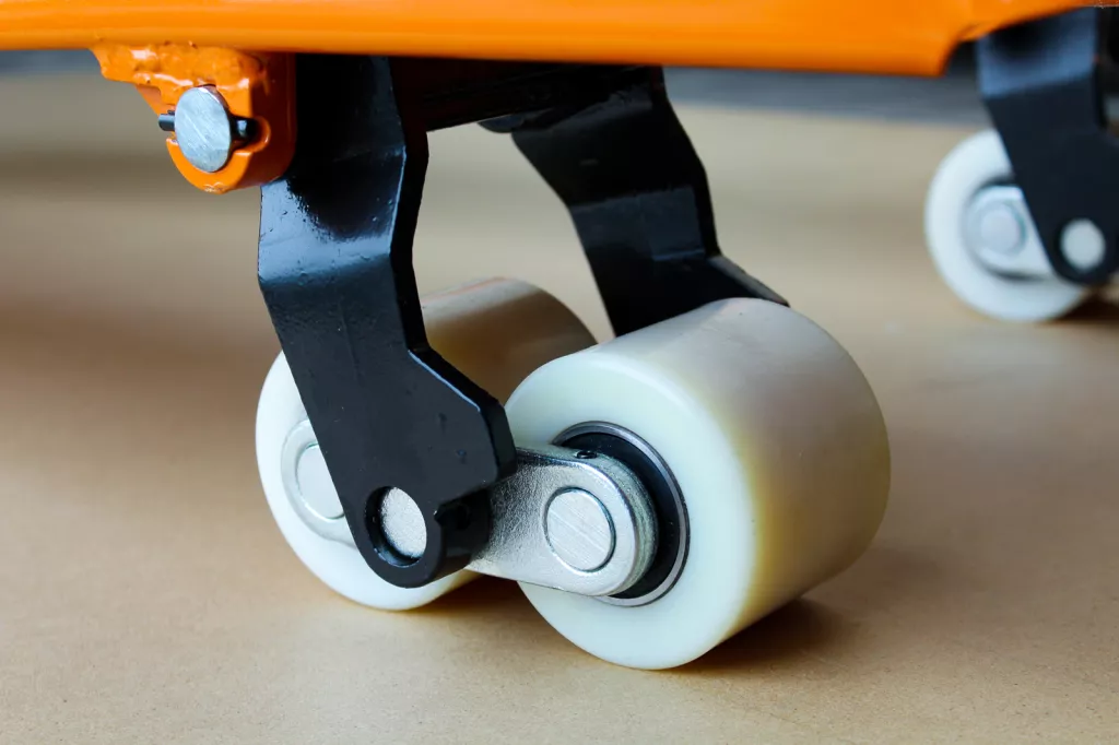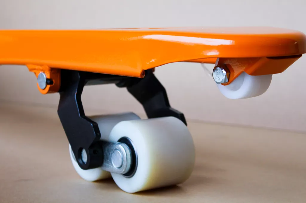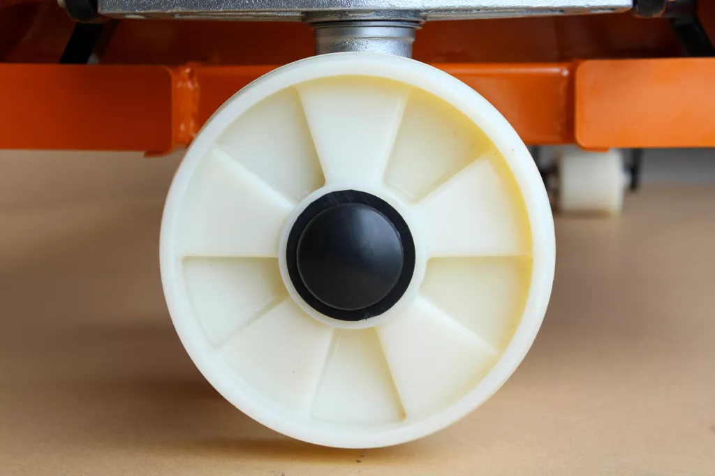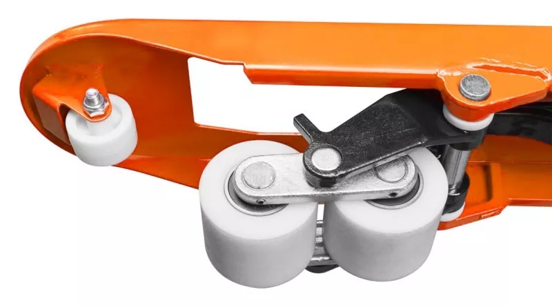 Przednie kółka oraz Rolki jezdne wykonane z są nylonu co zapewnia lekką pracę, niskie opory toczenia oraz powolne zużycie. Koła nylonowe są twardsze i bardziej wytrzymałe oraz znacznie tańsze w serwisowaniu.