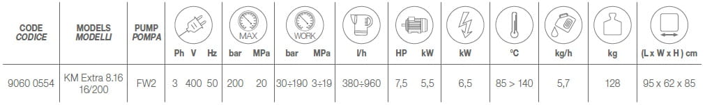 Wysokociśnieniowa myjka ciepłowodna profesjonalna COMET KM Extra 8.16 16/200 90600554