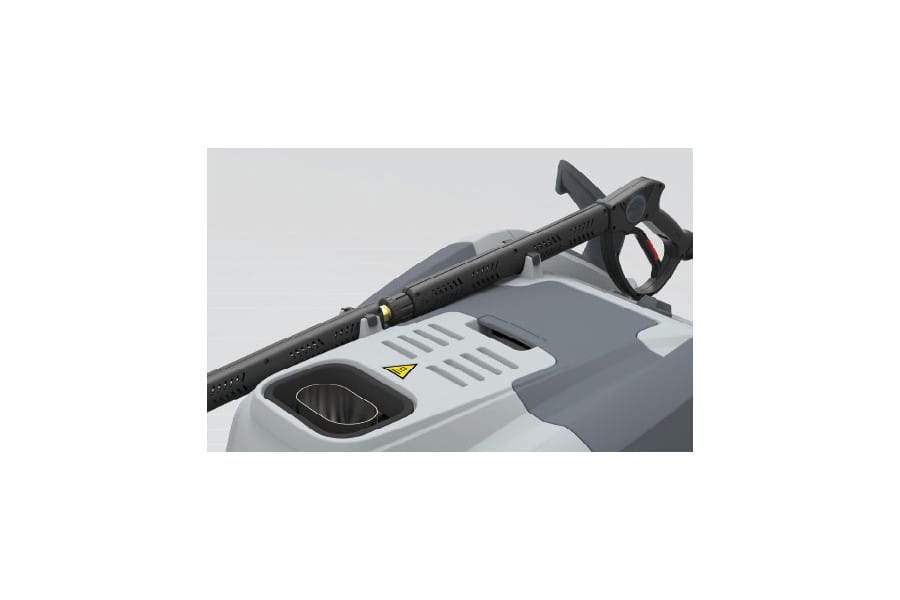 - Pokrywa: regulacja i wlew detergentu z systemem zasysania ze zbiornika zewnętrznego