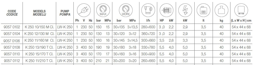 Wysokociśnieniowa myjka zimnowodna profesjonalna COMET K 250 13/190 Classic 90570108