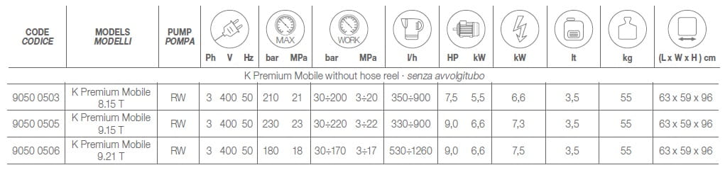 Wysokociśnieniowa myjka zimnowodna profesjonalna COMET K Premium Mobile 8.15 15/210 90500503