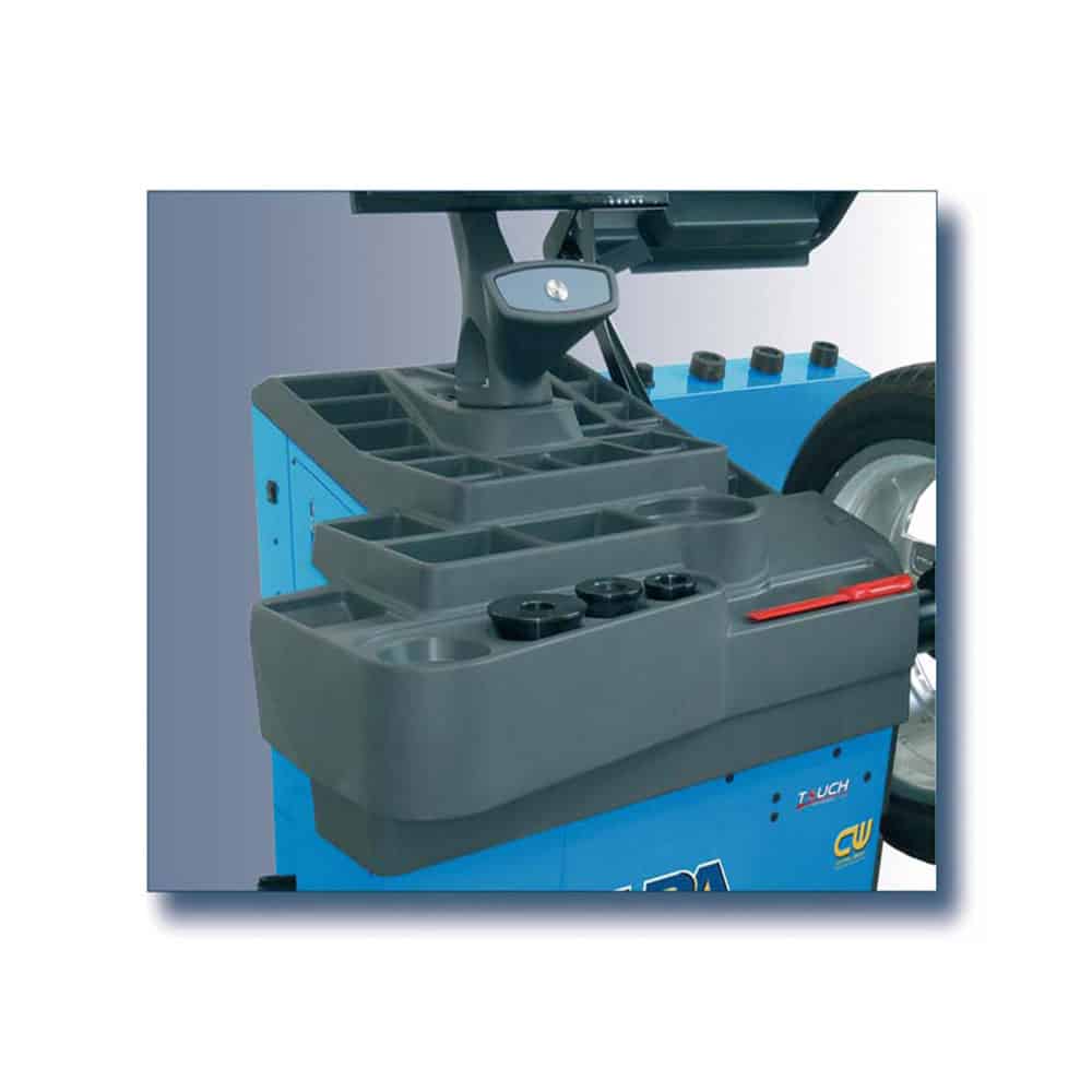 Profesjonalna, komputerowa wyważarka do kół samochodów osobowych, dostawczych i motocyklowych z monitorem LCD wykonanym w technologii “Touchscreen”, pozwalającej operatorowi na określanie parametrów wyważarki poprzez ekran dotykowy. Maszyna wyposażona została w nowy elektromechaniczny system mocowania koła na wale urządzenia tzw. “ELEKTROLOCK”.