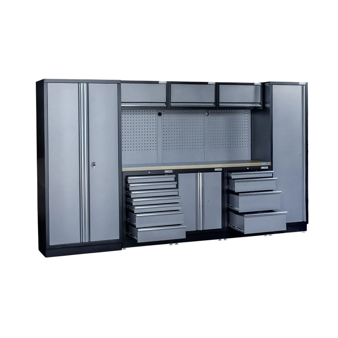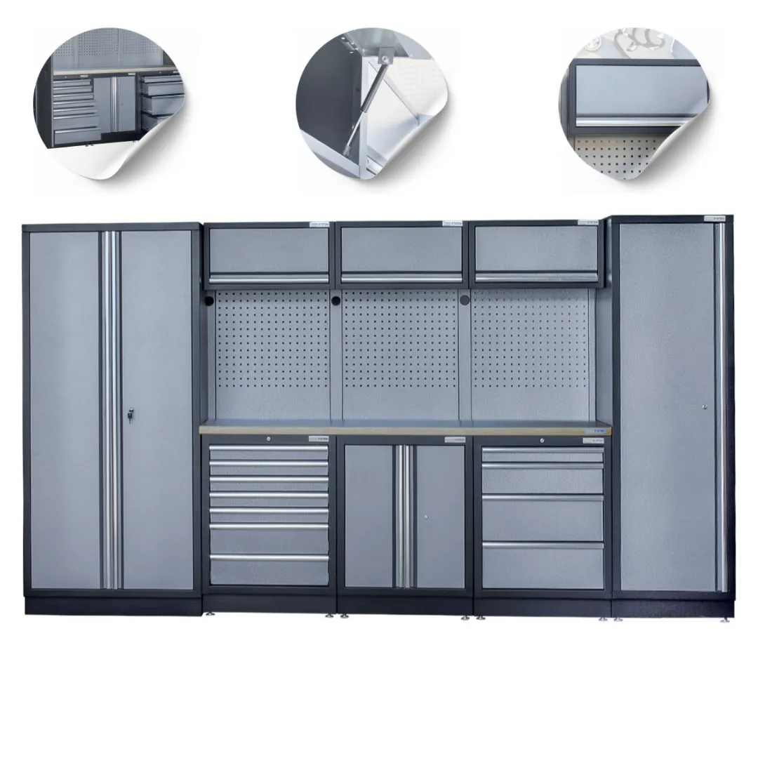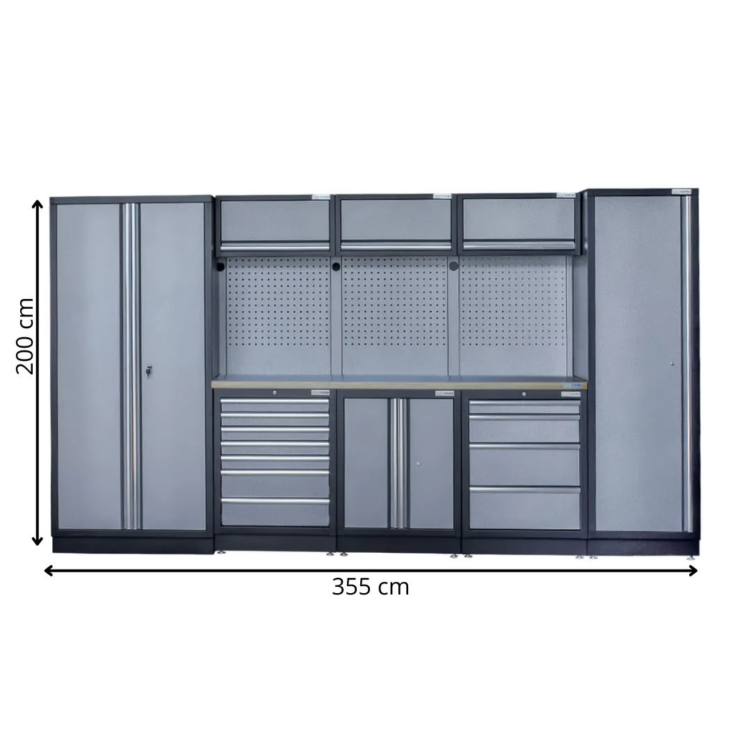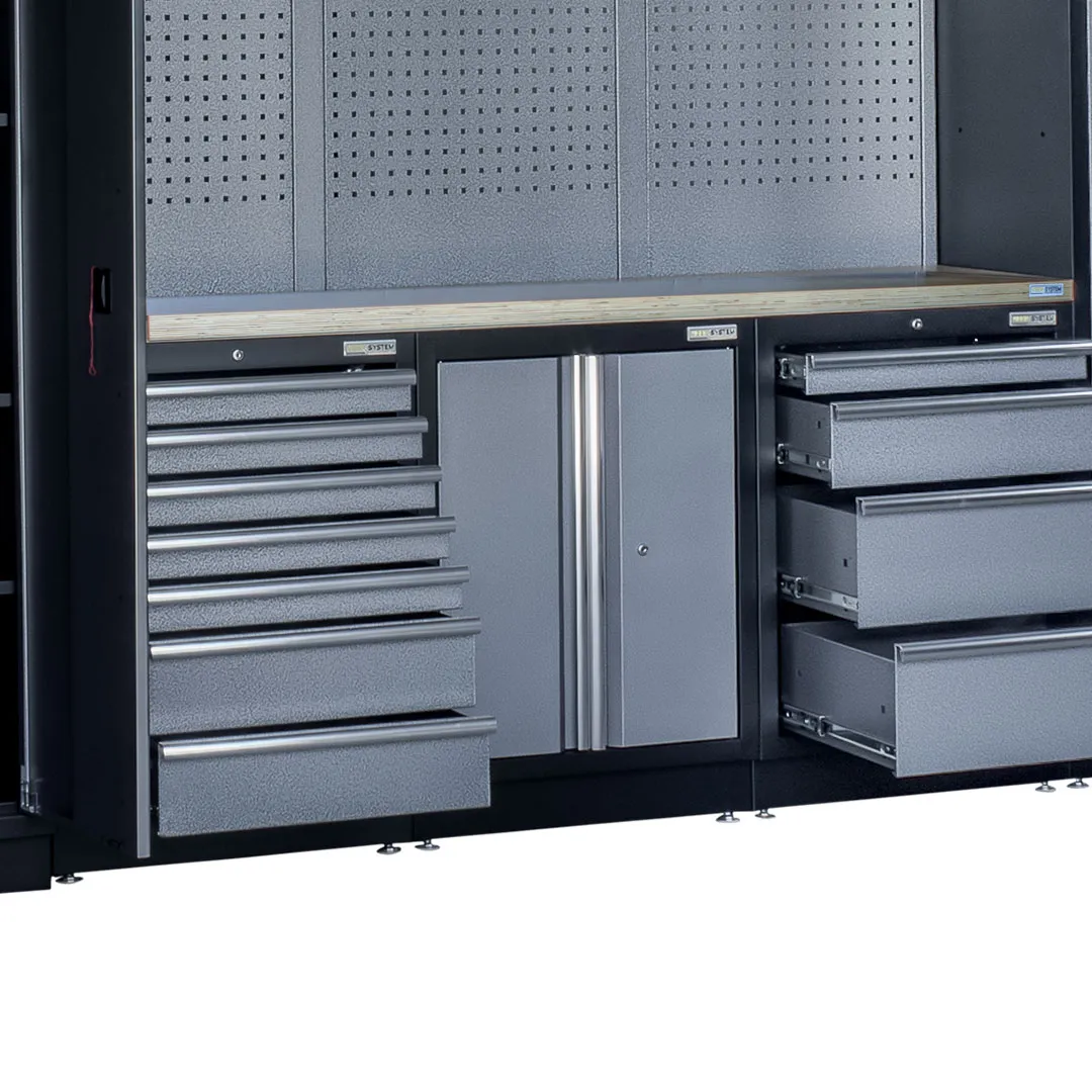 - Duża Pojemność: Przestronne szafki i półki w naszym zestawie pozwalają na wygodne przechowywanie wszelkiego rodzaju narzędzi i sprzętów warsztatowych, co ułatwia utrzymanie porządku i organizacji w miejscu pracy.