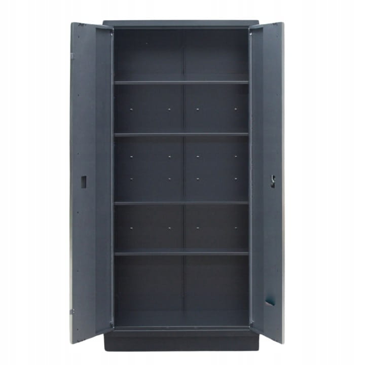 - Szafa dwudrzwiowa z zamkiem i 5 półkami model 1336 – idealna do przechowywania dużych narzędzi, akcesoriów i sprzętu roboczego