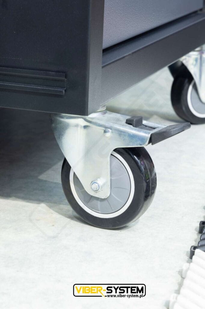 - Mobilna szafka warsztatowa na kółkach z zamkiem model 1305W – niezastąpiona podczas pracy mobilnej i zadań wymagających elastyczności