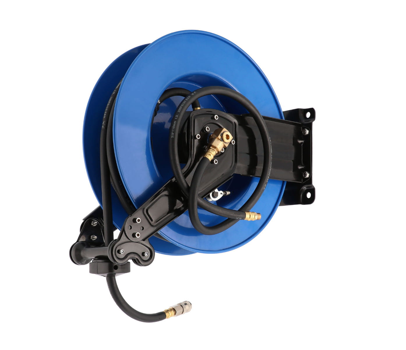 Zwijadło pneumatyczne 20 m 10 x 16 mm 20 bar w metalowej obudowie, wąż gumowy zbrojony.
