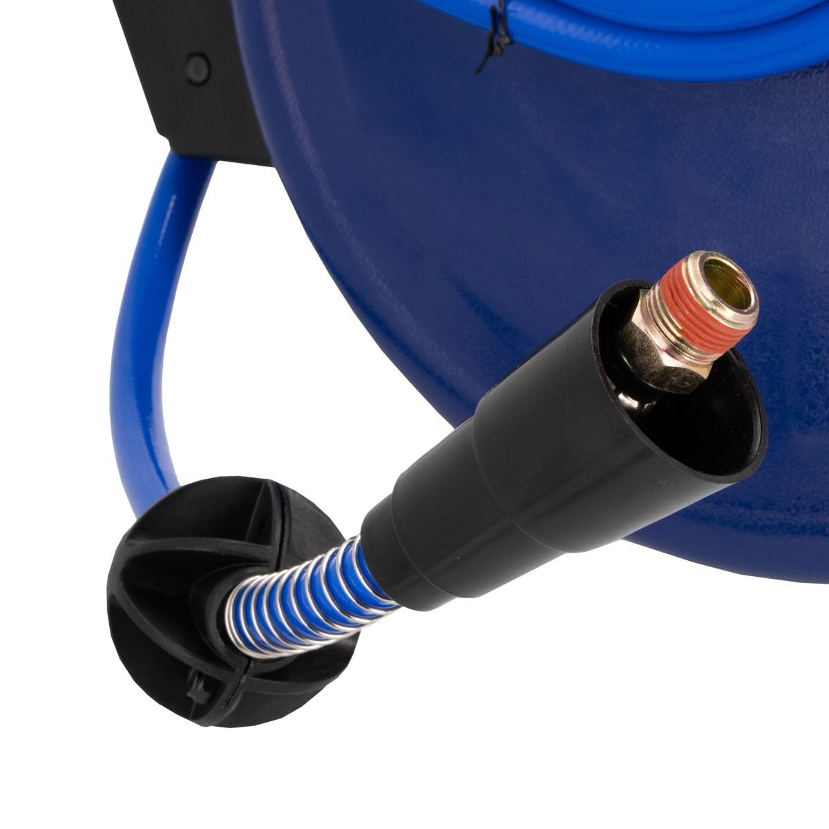 - Solidna konstrukcja – metalowa, zamknięta szpula chroni wąż przed zabrudzeniami.
